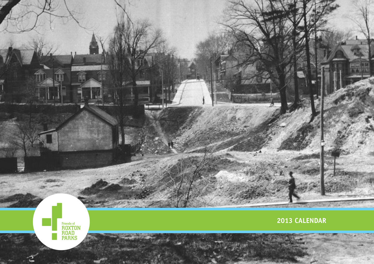 Our 2013 Friends of Roxton Road Parks calendar is sold out! Thanks to all who helped with the research and writing, design, production and distribution. We also want to thank everyone who supported the project by purchasing a calendar including some friendly businesses in our neighbourhood: Aguiar Fine Jewellery, Café Diplomatico, Il Gatto Nero, Merit Decorating Centre, Rapp Optical and The Royal Cinema; plus many individuals.