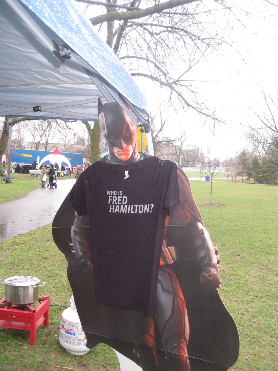 Thanks to Adam and Central Tree Care and Uxbridge Nurseries we also had Ninebark, Red Osler, and Snowberry shrubs for sale. Needless to say, we also had our popular “Who is Fred Hamilton” T-shirts for sale and Batman was spotted wearing one with pride!