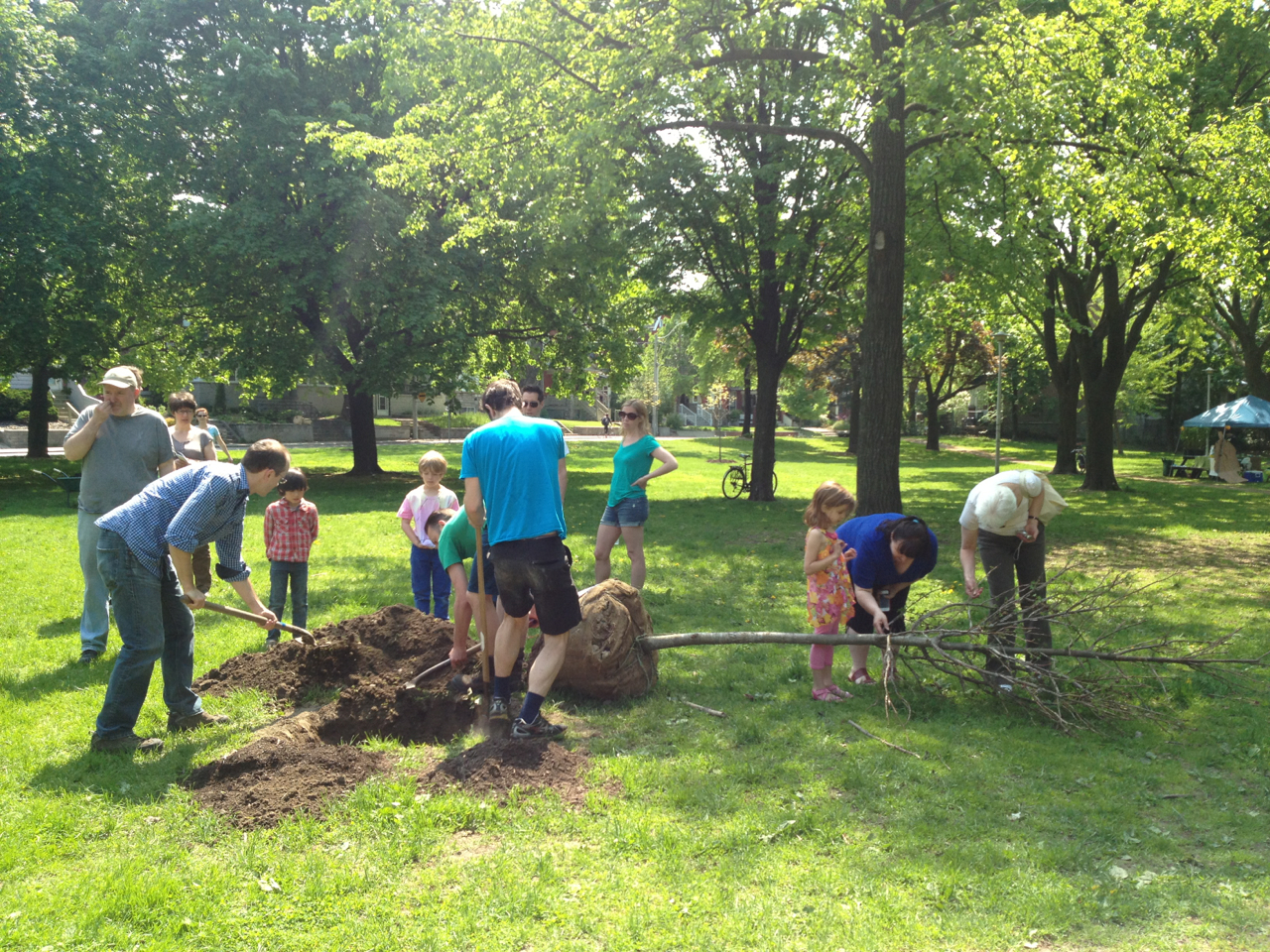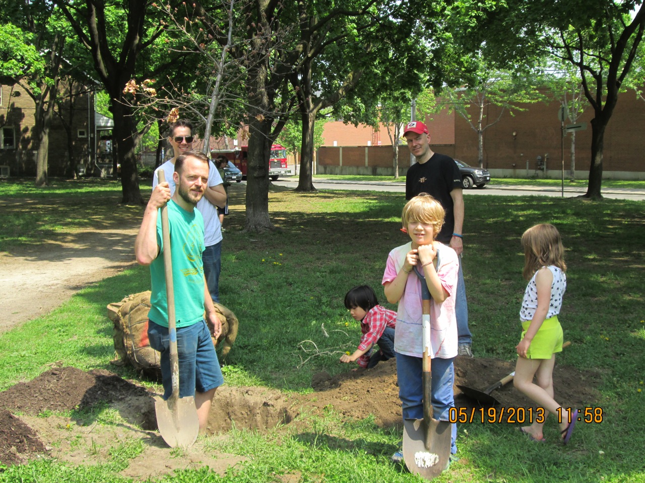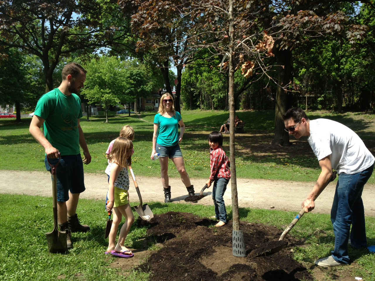 Under Adam Vandermeij’s expert guidance, (and with the help of many enthusiastic kids) we planted three of the 22 new trees that have been earmarked for our parks. Of the 22, eleven have been adopted through our Adopt-a-Tree program. The three planted Sunday were a Sweet gum (adopted by Tim Posgate), Tulip tree (adopted by Adam Vandermeij), and White oak (adopted by Amanda Rosenthal). All the trees are native to Ontario and should thrive in their conditions. The adopters will water them throughout the growing season using a cart, jug and hose which have been acquired by FoRRP through donations and fundraising efforts and events. Many thanks to our wonderful adopters and supporters.