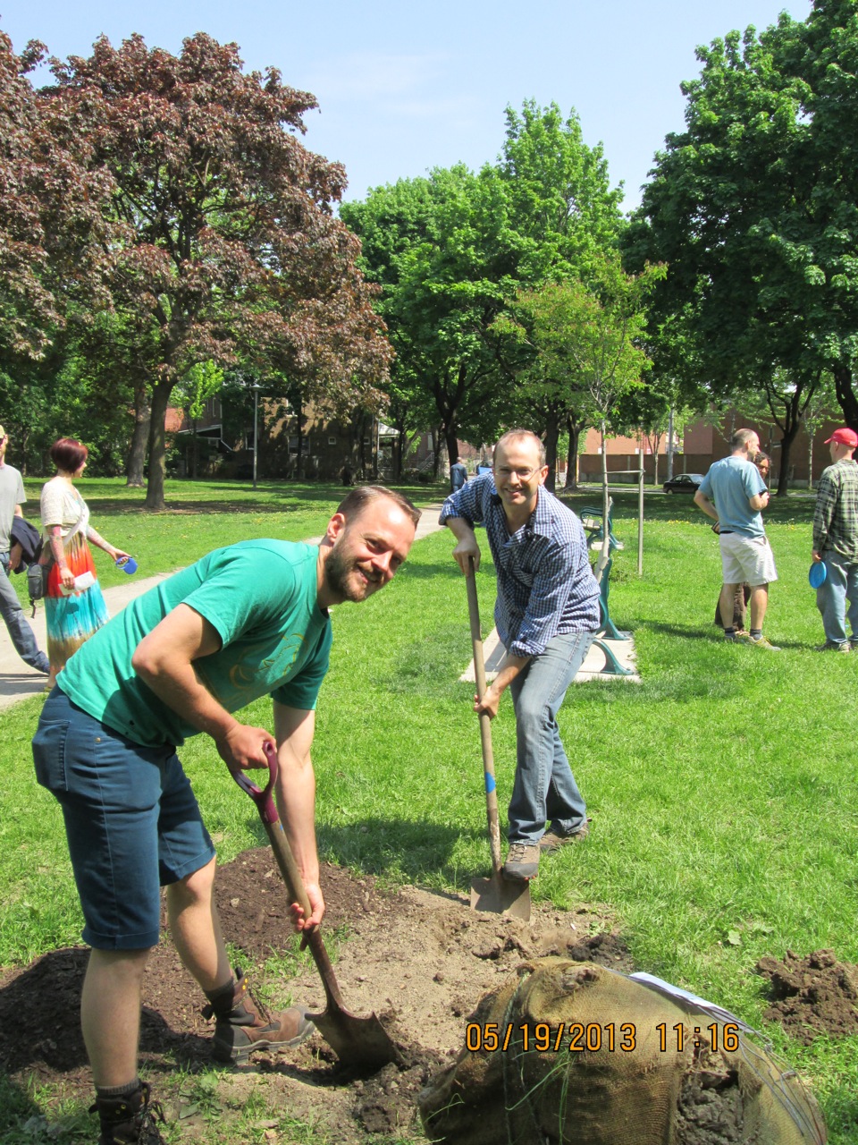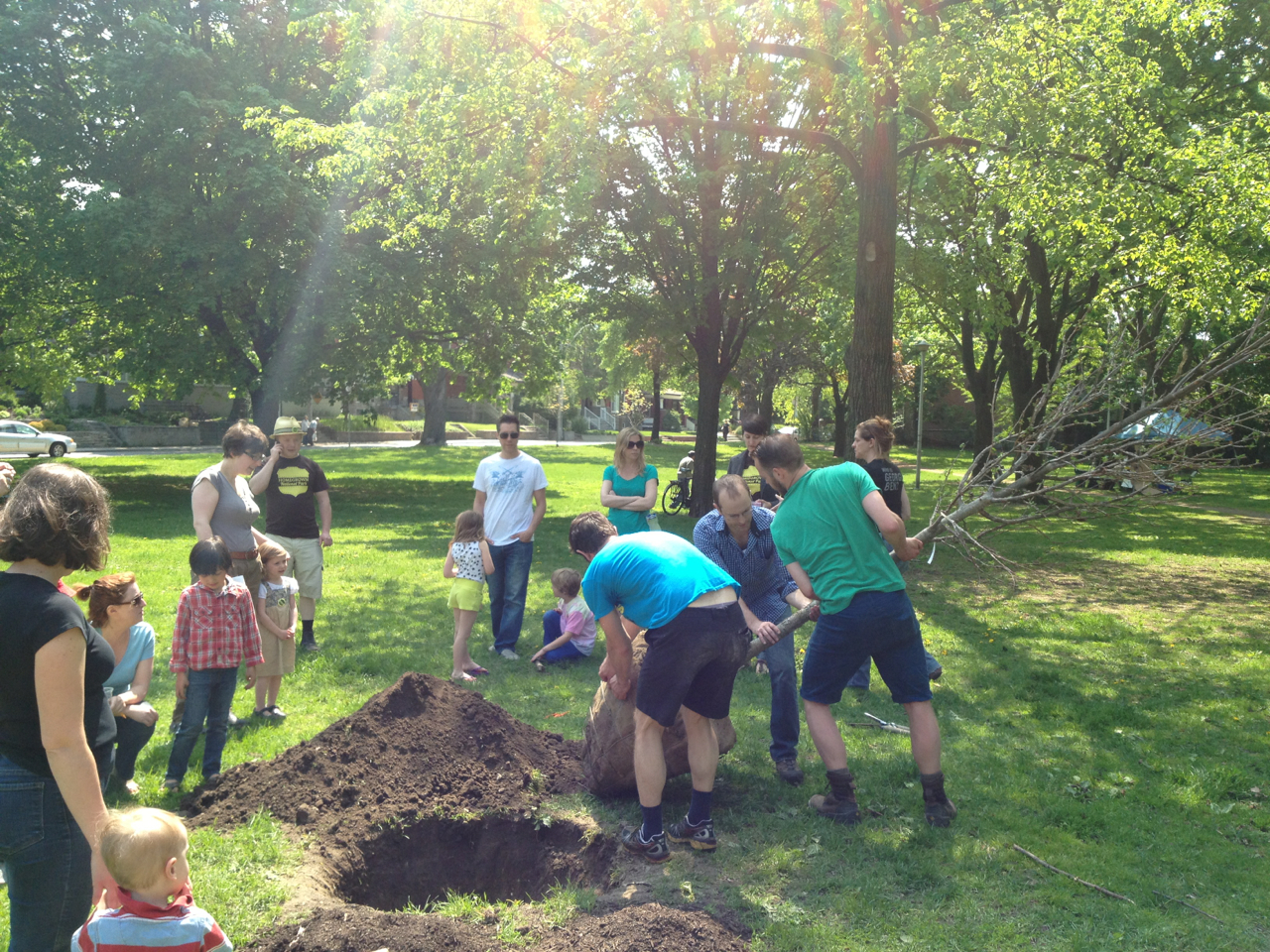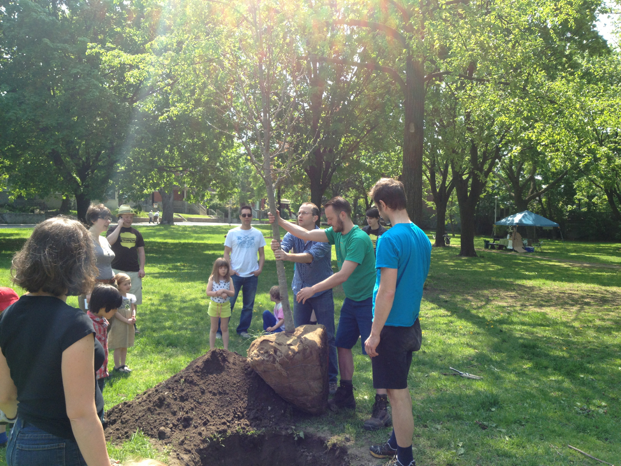 Under Adam Vandermeij’s expert guidance, (and with the help of many enthusiastic kids) we planted three of the 22 new trees that have been earmarked for our parks. Of the 22, eleven have been adopted through our Adopt-a-Tree program. The three planted Sunday were a Sweet gum (adopted by Tim Posgate), Tulip tree (adopted by Adam Vandermeij), and White oak (adopted by Amanda Rosenthal). All the trees are native to Ontario and should thrive in their conditions. The adopters will water them throughout the growing season using a cart, jug and hose which have been acquired by FoRRP through donations and fundraising efforts and events. Many thanks to our wonderful adopters and supporters.