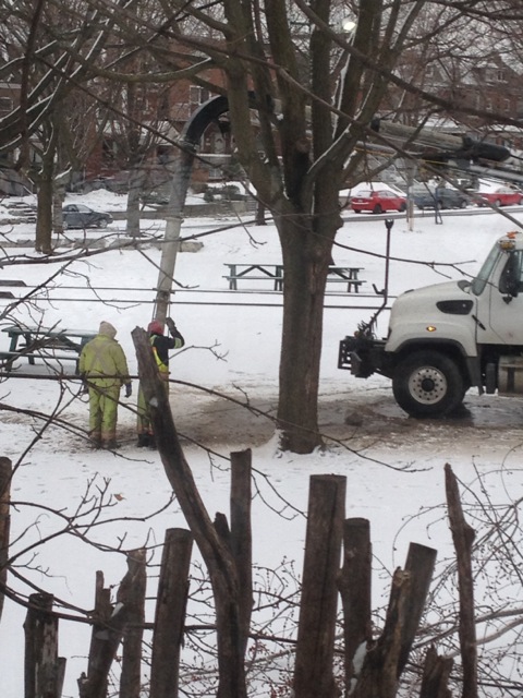 Several large vehicles started work in the park on Friday to run a Rogers Communications cable running north south through the centre of the upper area to service residents north of the park.