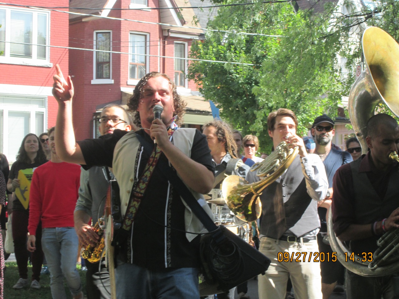 On Sunday, the park was a venue for the third David Suzuki sponsored Park Crawl, which followed the path of the Garrison Creek. Led into the park by an energetic band, the walkers gathered for a music/dance performance by Kitchen Gamelan and tasted Jon’s delicious artisanal ice-pops!