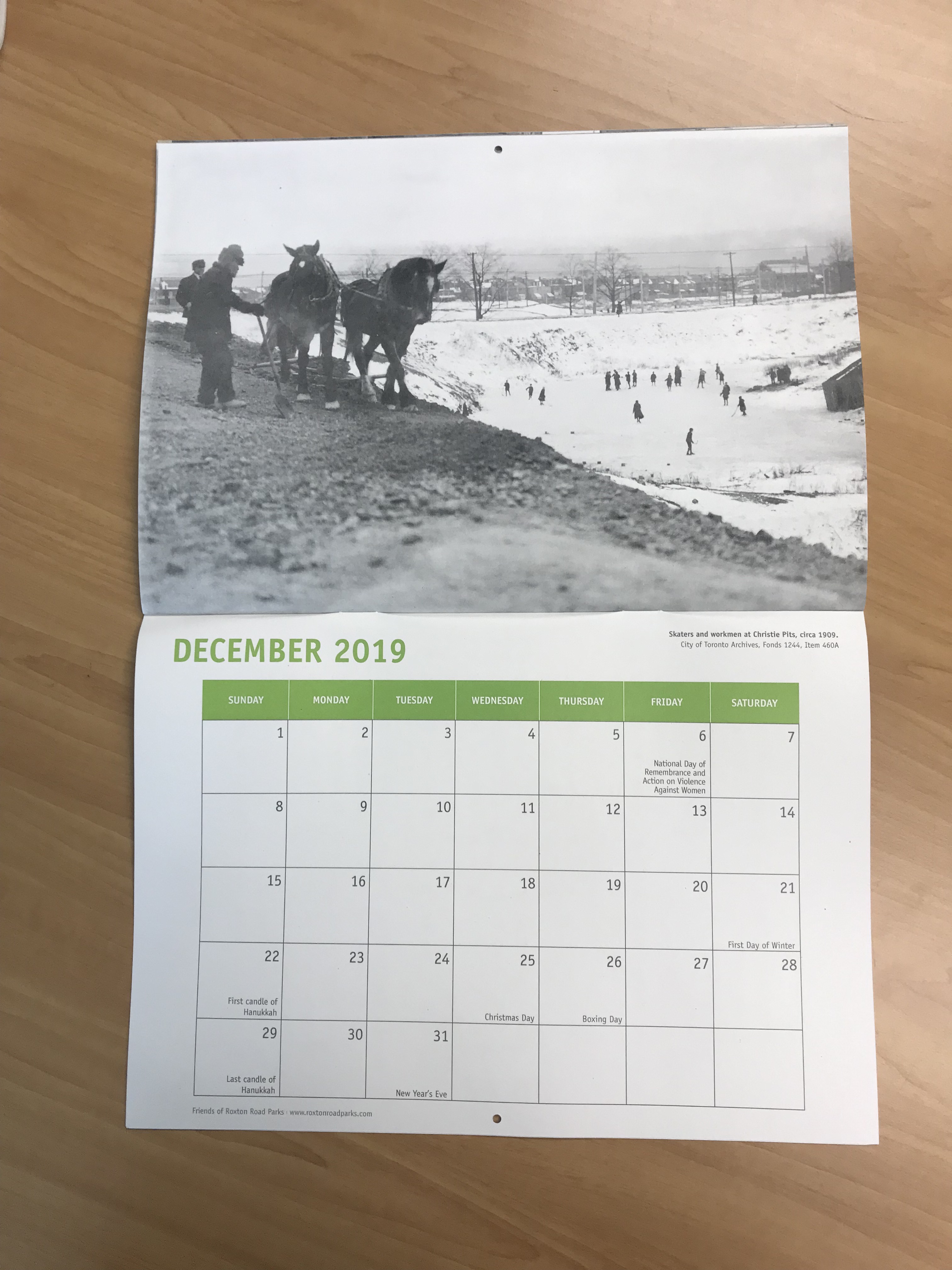 Now in our seventh year, the 2019 Roxton Road Parks Heritage Calendars have arrived! Priced at just $10, the Calendar is a great gift for those on your list as well as for you and your family. This limited-edition calendar is printed on FSC-certified paper and includes historic photos and maps sourced from the City of Toronto Archives, the Ontario Jewish Archives and the Toronto Public Library.